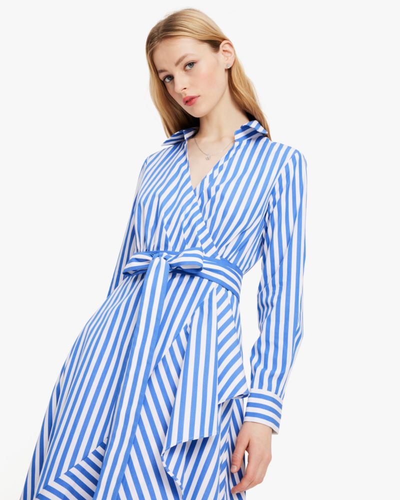 Get dressed in a flash with our Julia wrap dress. It's made from lightweight striped poplin with pretty ruffle accents.