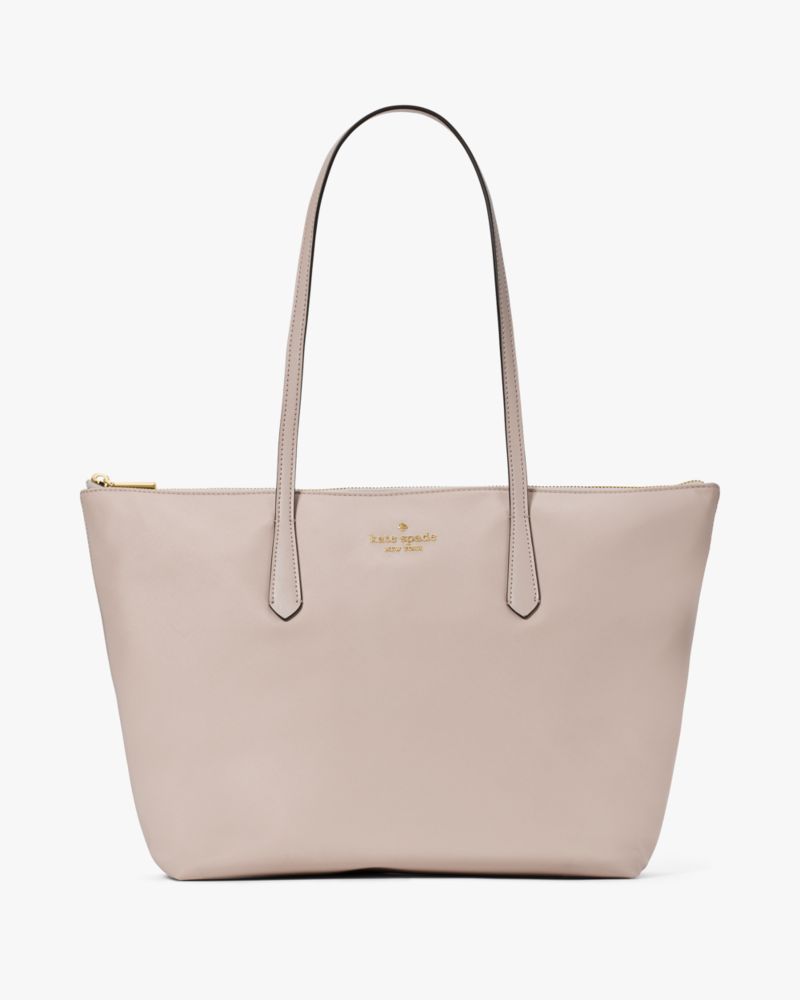 Kate Spade,Kitt Nylon Medium Tote,Nylon,Tote,PVC,Logo,Word Embellishment,Lined,Work,Beige