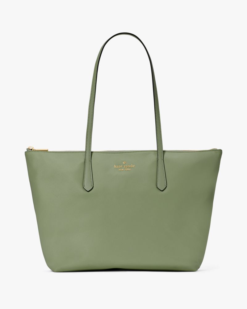 Kate Spade,Kitt Nylon Medium Tote,Nylon,Tote,PVC,Logo,Word Embellishment,Lined,Work,Olive