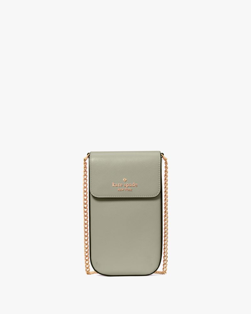 Kate Spade,Madison Phone Crossbody,Leather,Crossbody,Metal,Logo,Day Party,Gray