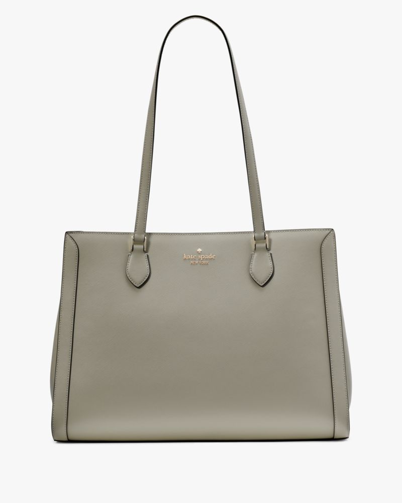 Stay organized on the go with our Madison laptop tote. Stylish and practical, it's crafted from durable Saffiano leather with a sleek east-west design. Plus, it features multiple pockets for essentials like a laptop, wallet and more.