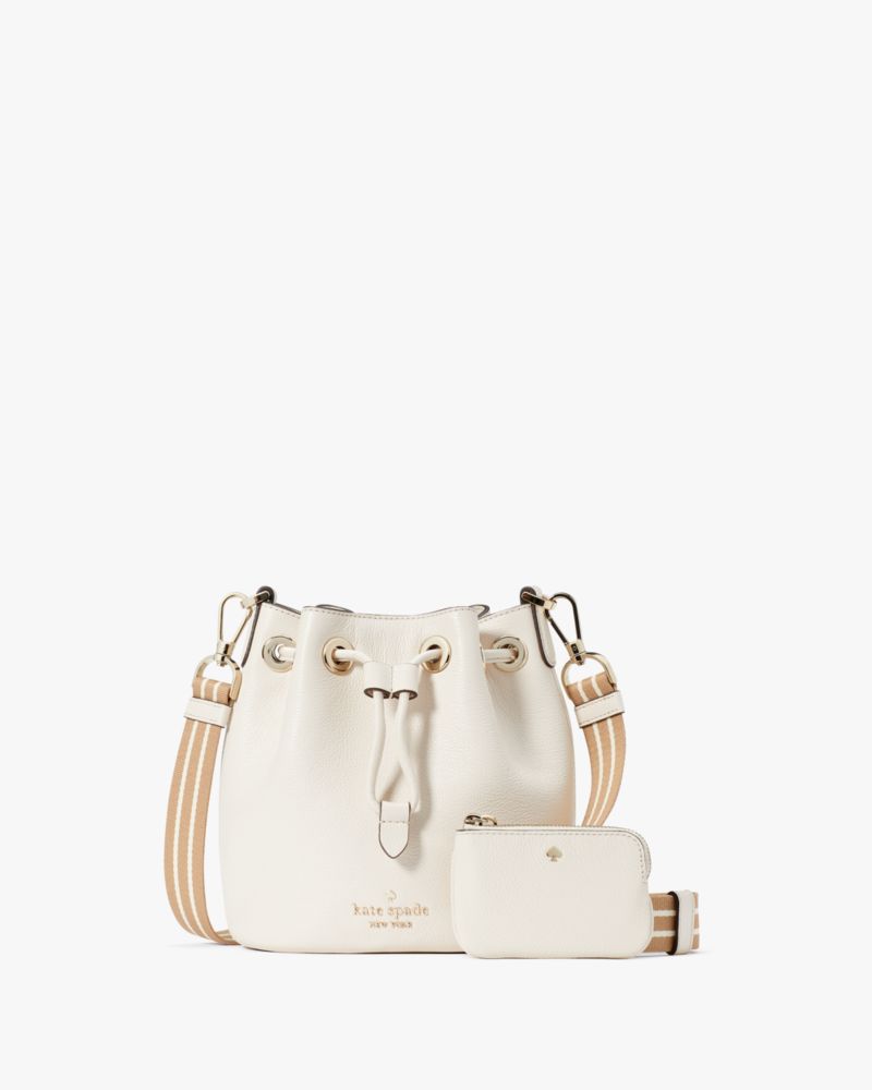 Kate Spade,Rosie Small Bucket Bag,Leather,Lining Leather,Coin,Bucket,Logo,Metal,Stripe,Lined,Casual,Cream,White