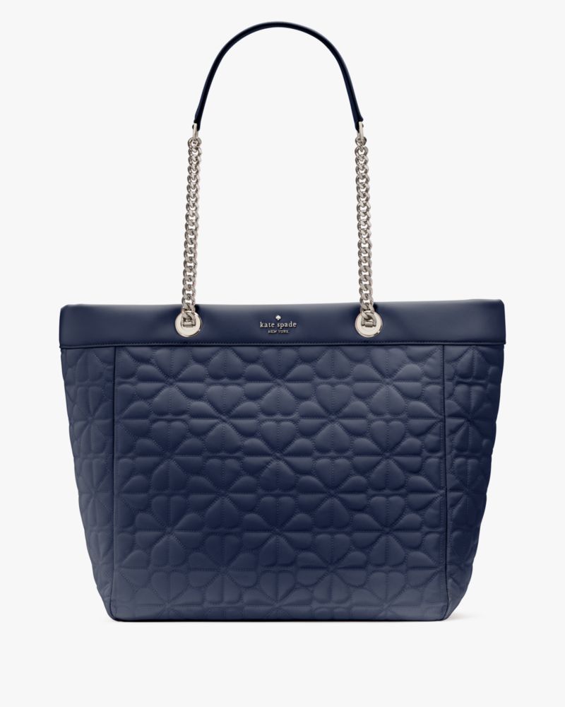 Kate Spade,Spade Flower Quilted Fabric XL Tote,Recycled Polyester,Tote,Day Party,Navy