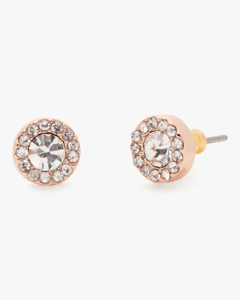 Kate Spade,You're A Gem Pave Halo Studs,Studs,Rhinestones,Gold Metal,Yellow Gold,Work,Clear