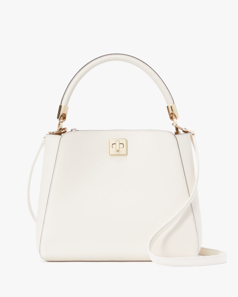 Kate Spade,Phoebe Medium Top Handle Satchel,Lining Leather,Satchel,PVC,Engraved Detail,Logo,Lined,Work,White