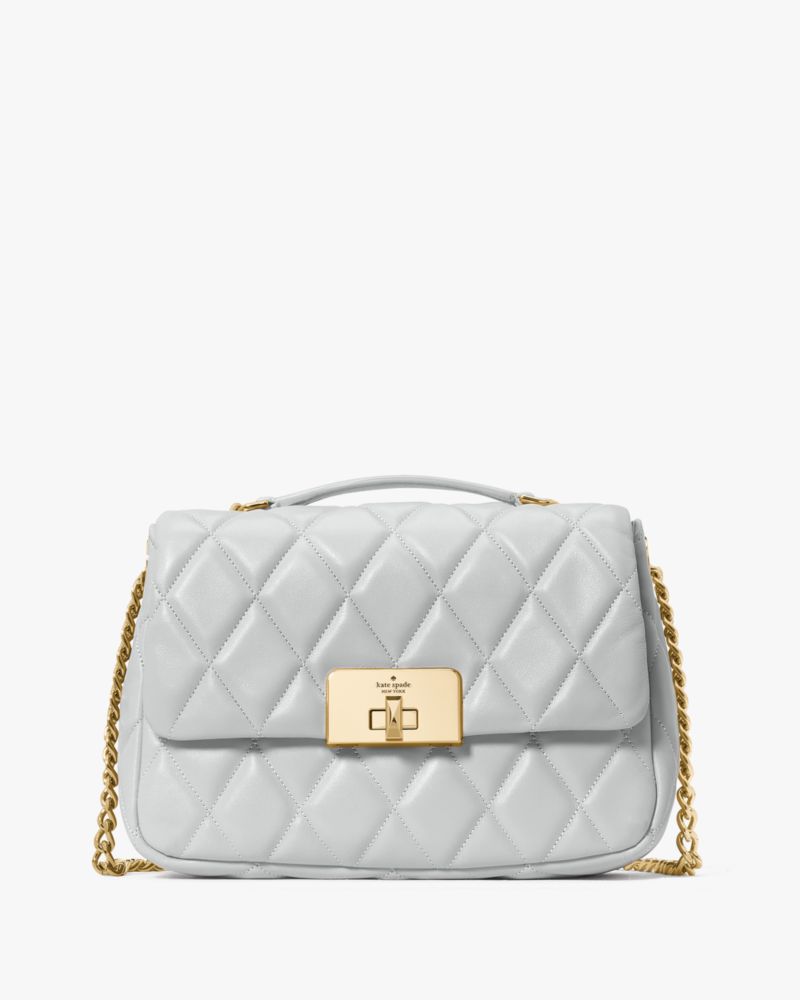 Kate Spade,Carey Quilted Small Flap Crossbody,Crossbody,Metal Material,Logo,Day Party,Gray