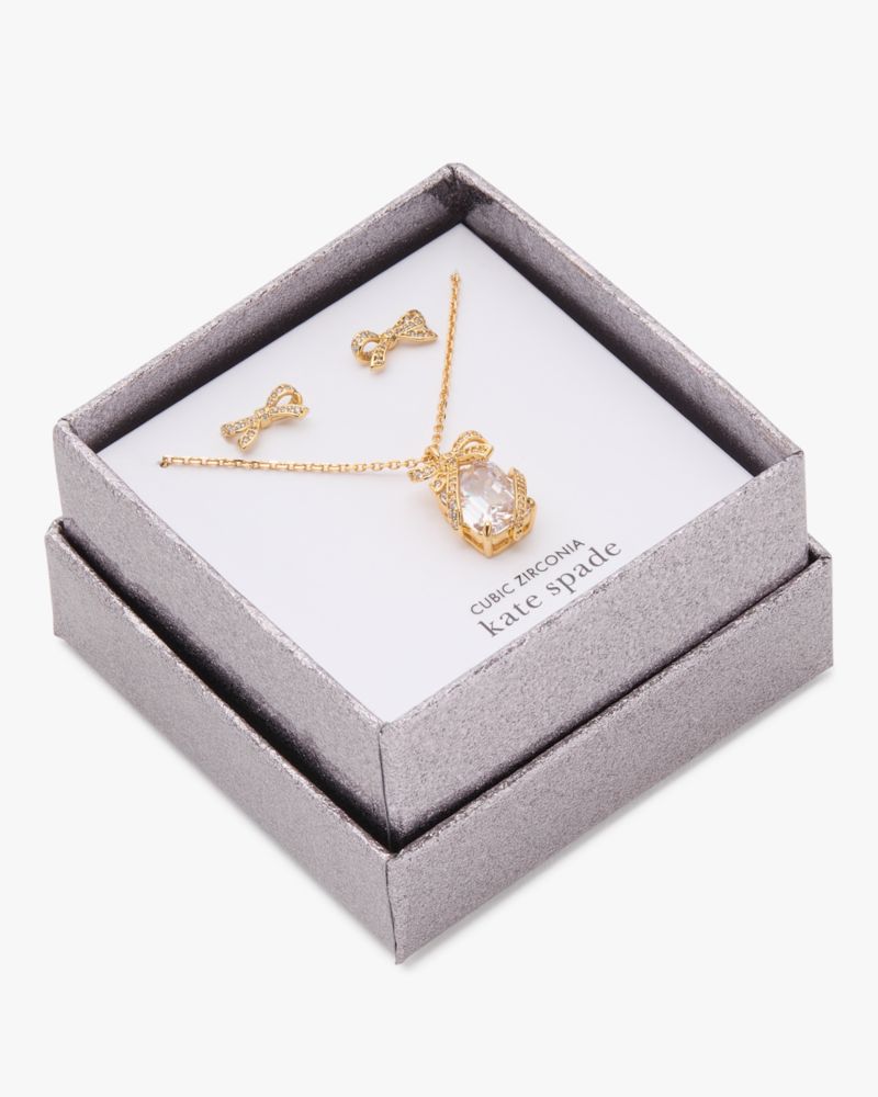 Kate Spade,Pave Present Pendant And Studs - Boxed,Studs,Single Strand,Cubic Zirconia,Gem Embellishment,Bow,Day Party,Casual,Clear